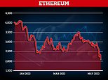 The world’s second largest cryptocurrency Ethereum has joined the crash – plummeting in value by 20 per cent over the last 24 hours – in the digital downturn that is hammering investors who bought during the Covid years.