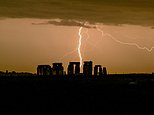 A dramatic lightning storm over Stonehenge in Wiltshire overnight as southern England was hit by thunderstorms