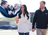 The Sussexes invited Sadiq Khan to their Santa Barbara mansion after they turned down an invitation to appear at his glitzy LA party last week (where he is seen greeting James Corden, left)