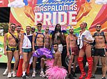 The Gran Canarian gay pride festival attended by 80,000 from Britain and across Europe is being investigated as a monkeypox superspreader event with links to cases in Madrid, Italy and Tenerife. Pictured, attendees at the event this month