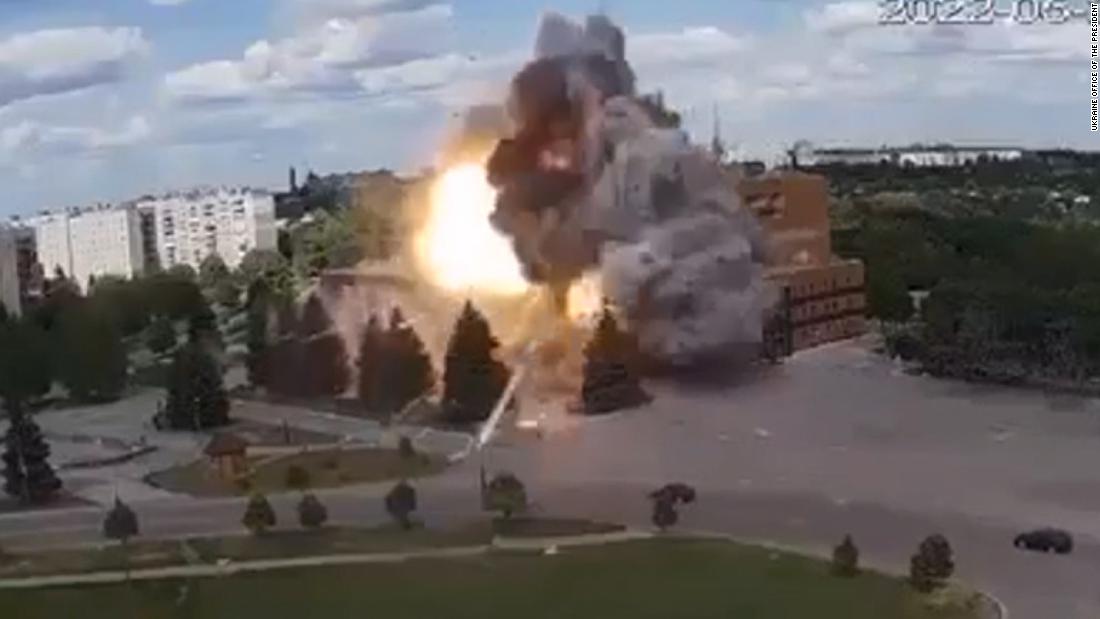 ‘);$vidEndSlate.removeClass(‘video__end-slate–inactive’).addClass(‘video__end-slate–active’);}};CNN.autoPlayVideoExist = (CNN.autoPlayVideoExist === true) ? true : false;var configObj = {thumb: ‘none’,video: ‘world/2022/05/21/russian-strike-cultural-center-kharkiv-ebof-vpx.cnn’,width: ‘100%’,height: ‘100%’,section: ‘domestic’,profile: ‘expansion’,network: ‘cnn’,markupId: ‘large-media_0’,adsection: ‘const-video-leaf’,frameWidth: ‘100%’,frameHeight: ‘100%’,posterImageOverride: {“mini”:{“width”:220,”type”:”jpg”,”uri”:”//cdn.cnn.com/cnnnext/dam/assets/220521113755-russian-strike-cultural-center-small-169.jpg”,”height”:124},”xsmall”:{“width”:307,”type”:”jpg”,”uri”:”//cdn.cnn.com/cnnnext/dam/assets/220521113755-russian-strike-cultural-center-medium-plus-169.jpg”,”height”:173},”small”:{“width”:460,”type”:”jpg”,”uri”:”//cdn.cnn.com/cnnnext/dam/assets/220521113755-russian-strike-cultural-center-large-169.jpg”,”height”:259},”medium”:{“width”:780,”type”:”jpg”,”uri”:”//cdn.cnn.com/cnnnext/dam/assets/220521113755-russian-strike-cultural-center-exlarge-169.jpg”,”height”:438},”large”:{“width”:1100,”type”:”jpg”,”uri”:”//cdn.cnn.com/cnnnext/dam/assets/220521113755-russian-strike-cultural-center-super-169.jpg”,”height”:619},”full16x9″:{“width”:1600,”type”:”jpg”,”uri”:”//cdn.cnn.com/cnnnext/dam/assets/220521113755-russian-strike-cultural-center-full-169.jpg”,”height”:900},”mini1x1″:{“width”:120,”type”:”jpg”,”uri”:”//cdn.cnn.com/cnnnext/dam/assets/220521113755-russian-strike-cultural-center-small-11.jpg”,”height”:120}}},autoStartVideo = false,isVideoReplayClicked = false,callbackObj,containerEl,currentVideoCollection = [{“descriptionPlainText”:”Ukrainian President Volodymyr Zelensky called Russian airstrikes “absolute evil” after the destruction of a cultural center that injured at least seven people in Lazova, Ukraine.”,”imageUrl”:”//cdn.cnn.com/cnnnext/dam/assets/220521113755-russian-strike-cultural-center-large-169.jpg”,”title”:”Russian strike Zelensky called ‘absolute evil’ caught on camera”,”videoCMSUrl”:”/videos/world/2022/05/21/russian-strike-cultural-center-kharkiv-ebof-vpx.cnn”,”videoLeafUrl”:”/videos/world/2022/05/21/russian-strike-cultural-center-kharkiv-ebof-vpx.cnn”,”videoId”:”world/2022/05/21/russian-strike-cultural-center-kharkiv-ebof-vpx.cnn”,”videoUrl”:”/videos/world/2022/05/21/russian-strike-cultural-center-kharkiv-ebof-vpx.cnn”,”surrogateKey”:”video_CAAA6697-15D1-7B8F-5864-E73F28D4CCEE”},{“descriptionPlainText”:”A Russian missile strike on an apartment block in Odesa, Ukraine, killed a family, including a 3-month-old baby, on Easter weekend. CNN’s Sara Sidner reports.”,”imageUrl”:”//cdn.cnn.com/cnnnext/dam/assets/220520142235-vid-thumb-odesa-1-large-169.jpg”,”title”:”Russian strike on Odesa apartment block kills family, including 3-month old”,”videoCMSUrl”:”/video/data/3.0/video/world/2022/05/20/russian-strike-odesa-apartment-pkg-sidner-newday-intl-ldn-vpx.cnn/index.xml”,”videoLeafUrl”:”/videos/world/2022/05/20/russian-strike-odesa-apartment-pkg-sidner-newday-intl-ldn-vpx.cnn”,”videoId”:”world/2022/05/20/russian-strike-odesa-apartment-pkg-sidner-newday-intl-ldn-vpx.cnn”,”videoUrl”:”/videos/world/2022/05/20/russian-strike-odesa-apartment-pkg-sidner-newday-intl-ldn-vpx.cnn/video/playlists/russia-ukraine-military-conflict/”,”surrogateKey”:”video_4E13F813-51B3-3D26-4698-E1B70984A157″},{“descriptionPlainText”:”Ukrainian evacuees in Kharkiv remain sheltered in subway tunnels. CNN’s Nick Paton Walsh reports on how they continue to live underground more than two months after the war started.”,”imageUrl”:”//cdn.cnn.com/cnnnext/dam/assets/220519165330-ukraine-kharkiv-subway-tunnel-large-169.jpg”,”title”:”How Ukrainian evacuees are staying hidden in subways”,”videoCMSUrl”:”/video/data/3.0/video/world/2022/05/19/ukraine-kharkiv-subway-shelters-dnt-lead-npw-intl-vpx.cnn/index.xml”,”videoLeafUrl”:”/videos/world/2022/05/19/ukraine-kharkiv-subway-shelters-dnt-lead-npw-intl-vpx.cnn”,”videoId”:”world/2022/05/19/ukraine-kharkiv-subway-shelters-dnt-lead-npw-intl-vpx.cnn”,”videoUrl”:”/videos/world/2022/05/19/ukraine-kharkiv-subway-shelters-dnt-lead-npw-intl-vpx.cnn/video/playlists/russia-ukraine-military-conflict/”,”surrogateKey”:”video_D9B42C78-8F51-A484-6495-DE0F67C84B1D”},{“descriptionPlainText”:”The first Russian soldier on trial for war crimes is back on the stand in Kyiv. The 21-year-old pleaded guilty to shooting a 62-year-old unarmed Ukrainian civilian. In court, he had a message for the victim’s widow. CNN’s Melissa Bell has more.”,”imageUrl”:”//cdn.cnn.com/cnnnext/dam/assets/220519095448-russian-soldier-trial-widow-split-bell-0519-large-169.jpg”,”title”:”Widow confronts Russian soldier who killed husband”,”videoCMSUrl”:”/video/data/3.0/video/world/2022/05/19/russian-soldier-trial-widow-exchange-bell-nr-sot-vpx.cnn/index.xml”,”videoLeafUrl”:”/videos/world/2022/05/19/russian-soldier-trial-widow-exchange-bell-nr-sot-vpx.cnn”,”videoId”:”world/2022/05/19/russian-soldier-trial-widow-exchange-bell-nr-sot-vpx.cnn”,”videoUrl”:”/videos/world/2022/05/19/russian-soldier-trial-widow-exchange-bell-nr-sot-vpx.cnn/video/playlists/russia-ukraine-military-conflict/”,”surrogateKey”:”video_46303108-BB44-F5DD-B188-DC764B111C8A”},{“descriptionPlainText”:”Ireland is giving Ukrainian refugees fleeing war the royal treatment by housing them in a 15th century castle. CNN’s Donie O’Sullivan has the details.”,”imageUrl”:”//cdn.cnn.com/cnnnext/dam/assets/220519065522-irish-castle-large-169.jpeg