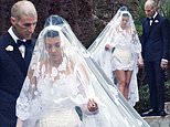 Kourtney, 43, remained hidden from view as she entered the garden to a moving rendition of a woman singing Ave Maria, as earlier correctly predicted by MailOnline.