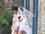 EXCLUSIVE: Kourtney Kardashian and Travis Barker are MARRIED (again!) Beauty stuns in embroidered veil and figure-hugging white mini dress after romantic Portofino nuptials surrounded by famous family members and celebrity guests