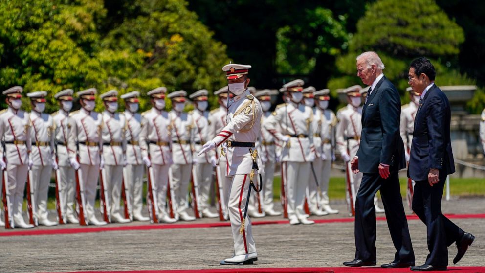 Kishida said at their meeting that he was “absolutely delighted” to welcome Biden to Tokyo on the first Asia trip of his presidency. Along with Biden, he drove a tough line against Russia over its invasion of Ukraine, saying the aggression “undermines the foundation of global order.”