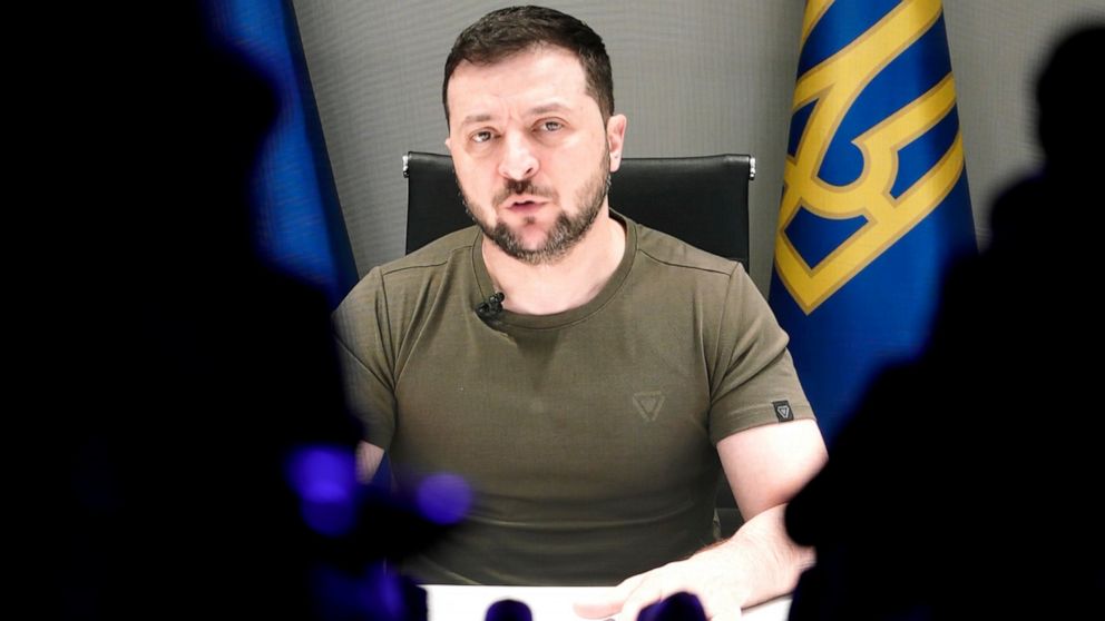 He says in a virtual speech Monday that sanctions need to go further to stop Russia’s aggression, including an oil embargo, all of its banks blocked and cutting off trade with Russia completely.