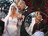 Posting a series of snaps of the pair kissing as they were pronounced man and wife, Kourtney wrote: ‘happily ever after’.