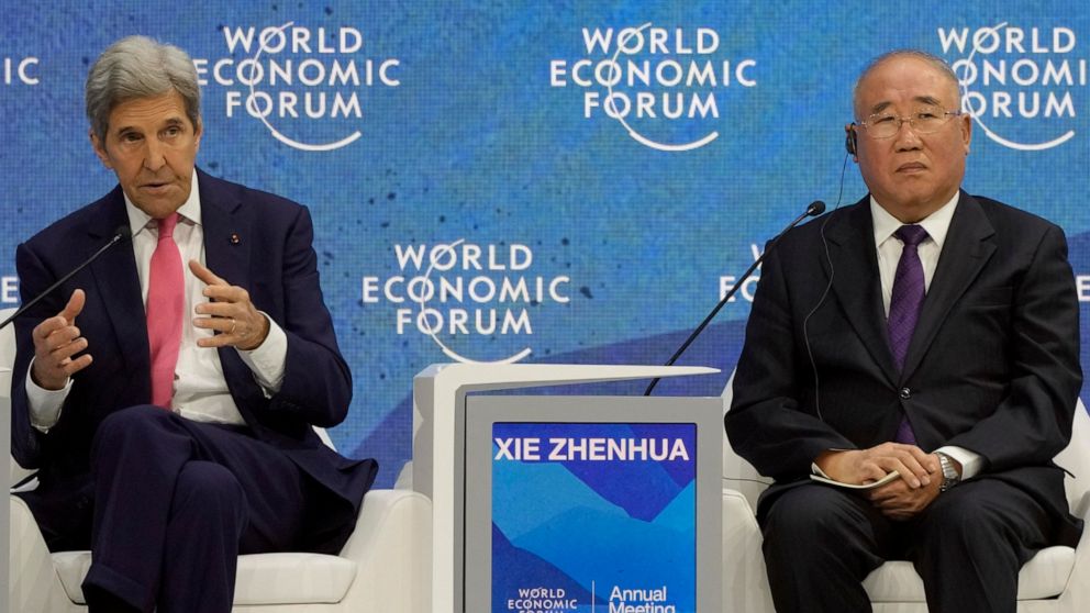 U.S. climate envoy John Kerry says at the World Economic Forum’s annual gathering in Davos that Russia’s war in Ukraine shouldn’t deter climate goals.