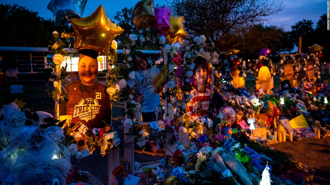 Meanwhile, families and friends have begun burying their loved ones, and the community continues to cope. In Uvalde’s sun-drenched town square, a park fountain is the centerpiece of a growing memorial honoring those lost.