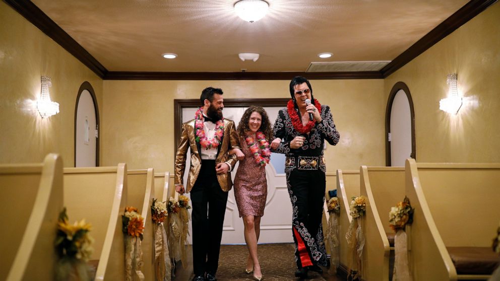 One chapel last weekend had its Elvis impersonator change instead into a leather jacket, jeans and a fedora for a “rock ‘n’ roll” themed ceremony, the Review-Journal reported.