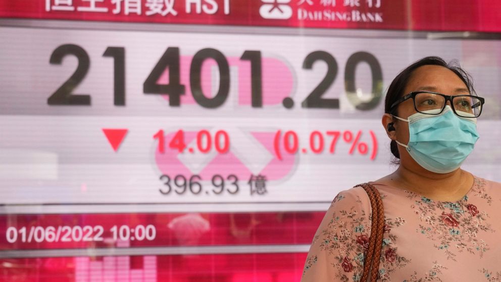 Hong Kong’s Hang Seng fell 0.4% to 21,323.47 and the Shanghai Composite index shed 0.1% to 3,182.16. Both indexes rose sharply on Tuesday as Shanghai eased its stringent anti-virus limits on businesses and other activities.